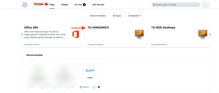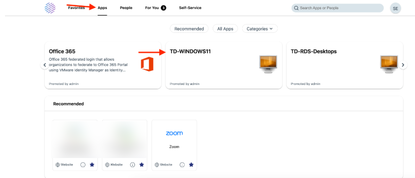 - Opened TestDrive Workspace ONE and log in with your TestDrive credentials