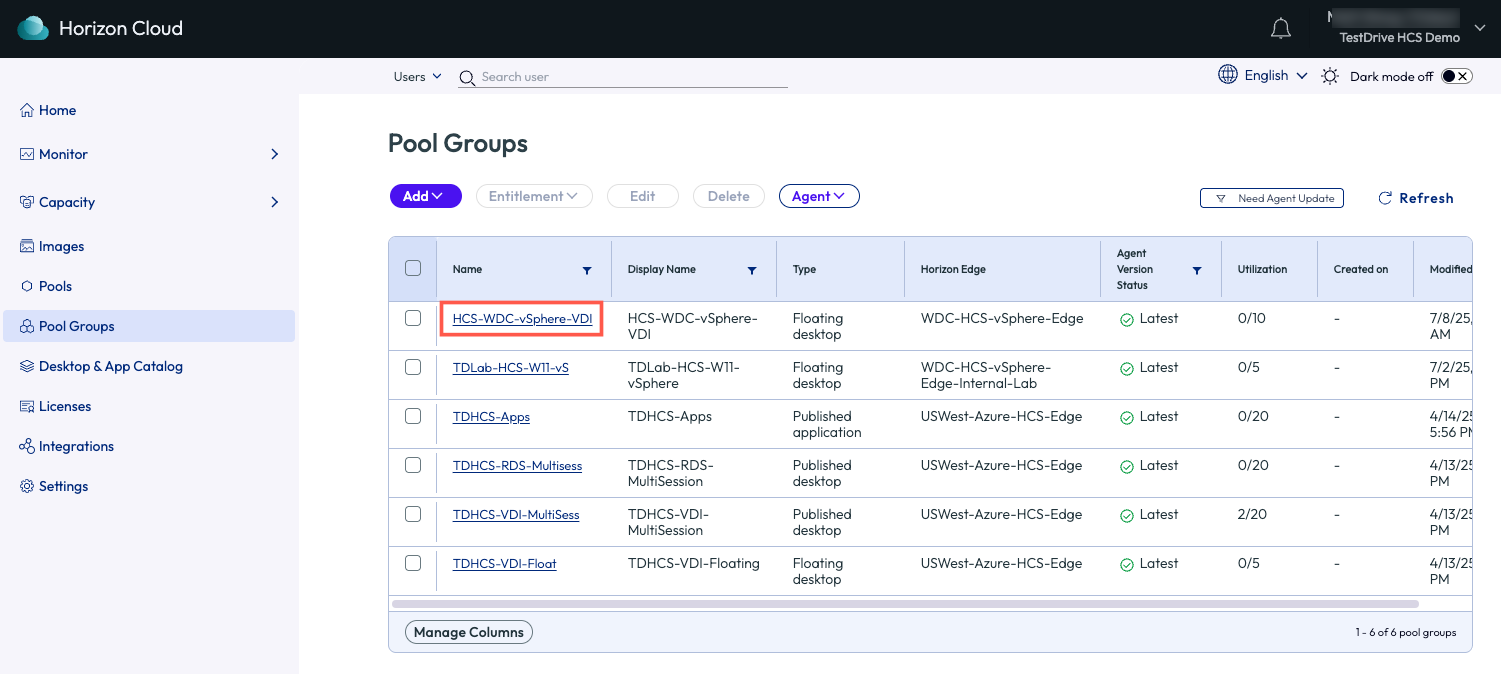 Go to Pool Groups, then click on the pool group named HCS-WDC-vSphere-VDI.
