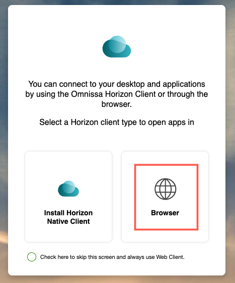 To launch VDI desktop that was deployed through the Horizon Cloud vSphere Edge, open a separate browser window to https://cloud.omnissahorizon.com.