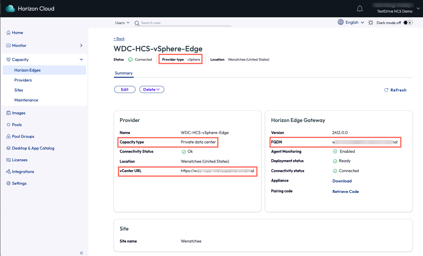 Horizon Cloud with vSphere Edge capacity support is currently under Limited Availability.