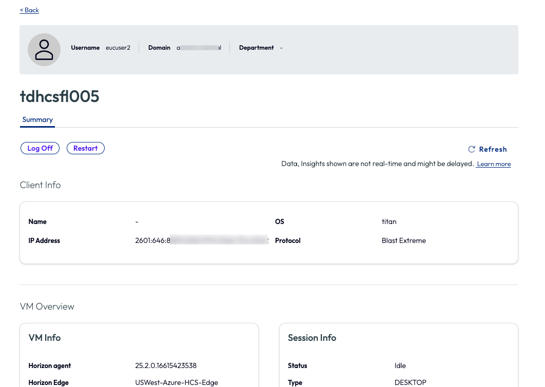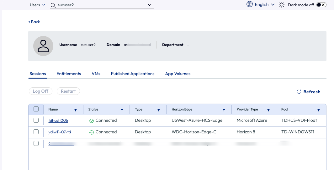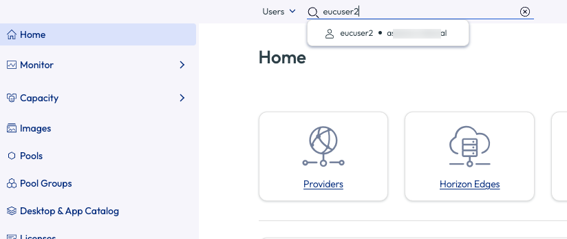 **Before doing a user search, connect to a desktop or app with your Testdrive credentials following the instructions here: Horizon Cloud on Microsoft Azure Next-Gen - Desktops and Apps***