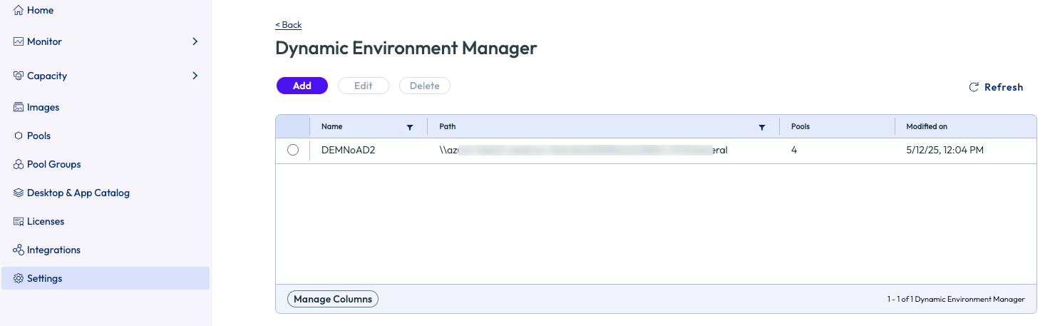 Go back to the main Settings page and under Dynamic Environment Manager, click on Manage.