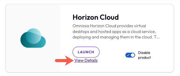 After your Horizon Cloud access has been enabled, click View Details within the product tile.