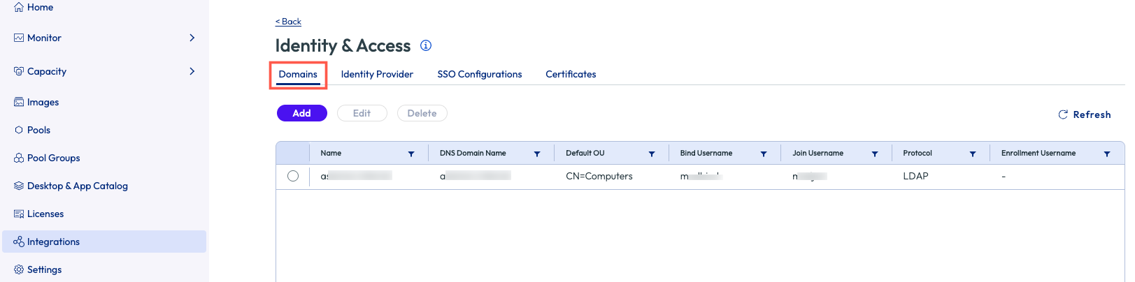 Domains is where the domain authenticating users and machines that are part of the Horizon Cloud Environment are managed.
