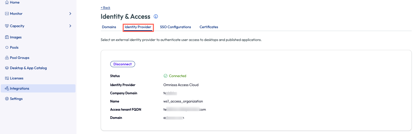 Identity Provider is where the entity responsible for providing Identity and access, (in our case Omnissa Access Cloud) is managed.