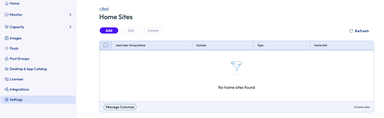 Go back to the main Settings page and under Home Sites, click on Manage.