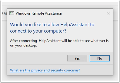 There will be a prompt in the other user's session, asking them to allow the Remote Assistance. Have the user hit Yes.