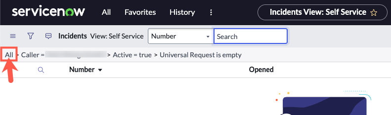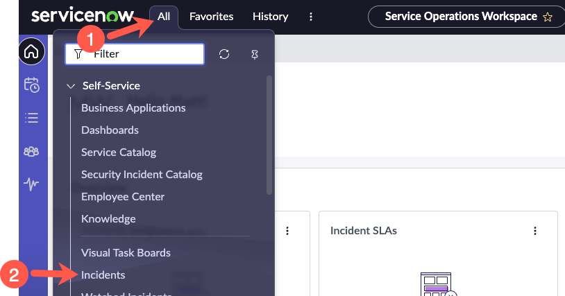 In ServiceNow, go to All > Self-Service > Incidents.