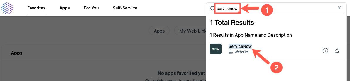 - Login to ServiceNow from Workspace ONE.