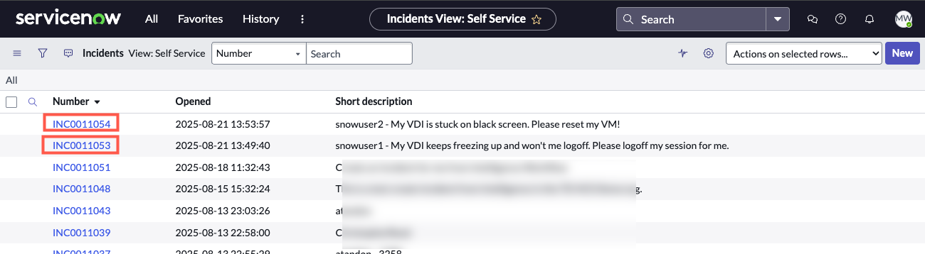 This concludes the walkthrough of the Horizon integration with Workspace ONE ITSM Connector for ServiceNow.
