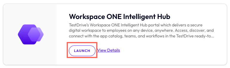 From within DemoZone in the TestDrive Portal, find the Workspace ONE Intelligent Hub product tile, then click the View Details button.
