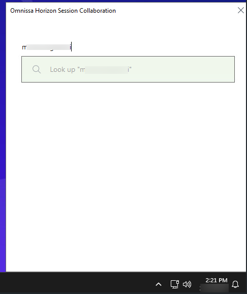 In the Horizon Session Collaboration box that appears, type in the username of a TestDrive user* who you will collaborate with in the VDI session, then click on Look up to add their username.
