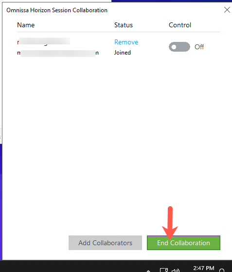 To end the Session Collaboration, open Session Collaboration from the system tray then choose End Collaboration.