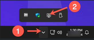 From within the VDI desktop, expand the system tray and then click on the Horizon Collaboration icon.