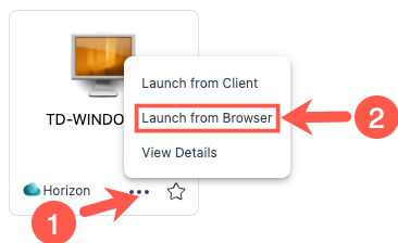 Find TD-WINDOWS11 on the page, then click the three dots in the lower right corner of the icon and choose Launch from Browser.