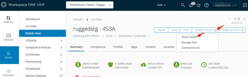 To start an Assist session as well as find guidance on Assist functions, click here for the Workspace ONE Assist product guide.