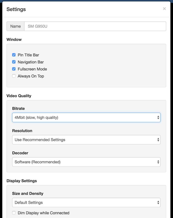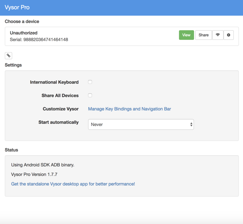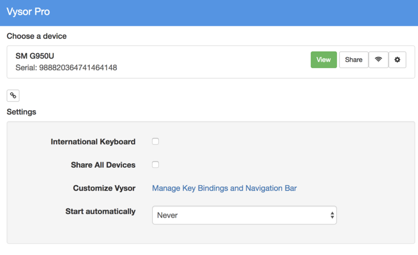Vysor Settings¶