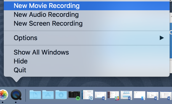 From the icon, right click to get the options and select New Movie Recording