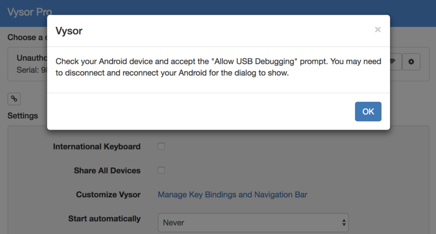 Launch Vysor App¶