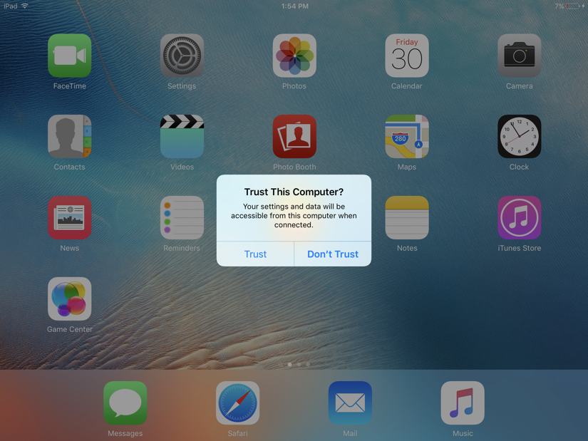 Plug in your iOS device to your computer. Make sure that you select to Trust This Computer when prompted on your device.