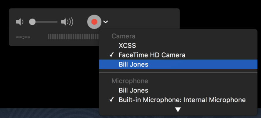 Then, QuickTime will launch most likely with your camera. Then select from the drop down the name of your device.