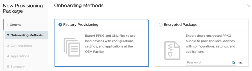 - PPKG file creation is streamlined by Workspace ONE UEM's innovative Factory Provisioning Service.