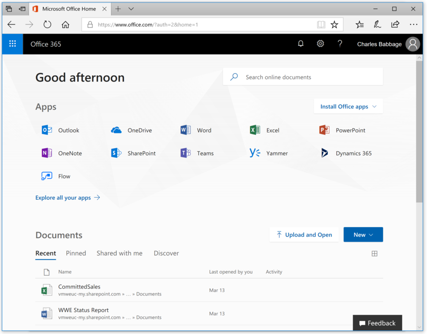 Go back to the Office 365 portal, previously launched by workspace ONE, and launch Excel.