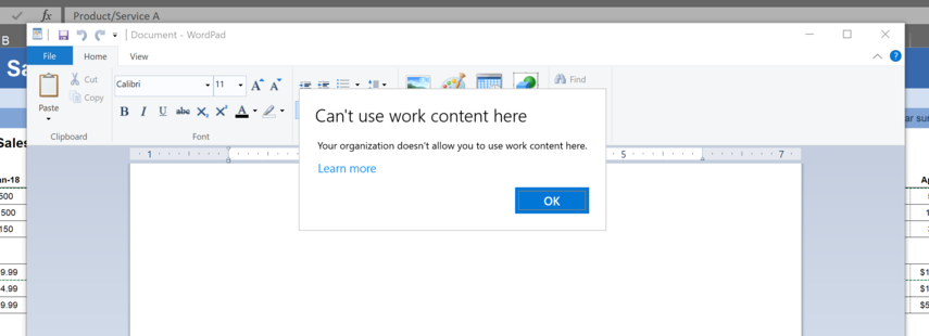 Workspace ONE UEM Data Protection for Windows 10 is currently degraded in TestDrive as certain features, such as protected data copy/paste and protected document saving, aren't able to function due to new licensing requirements. Rest assured, the issue is environmental and is NOT present in production implementations of Workspace ONE UEM with Windows 10 Enterprise and Office 365 applications.