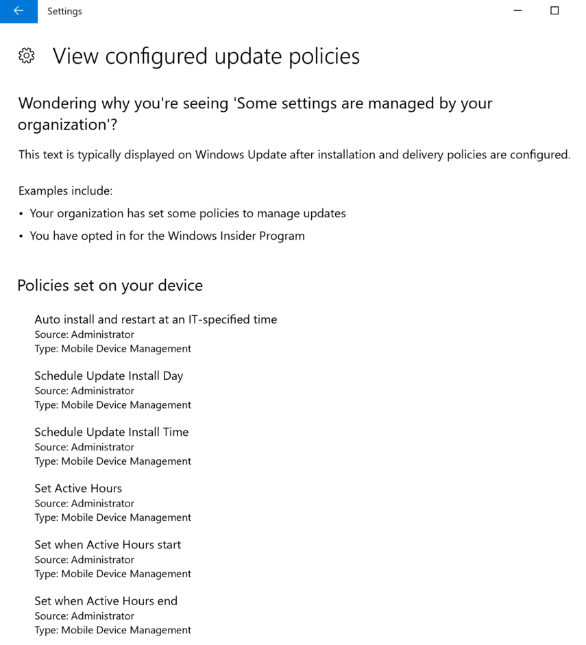 Click the link "view configured update policies" to review Workspace ONE's configured policies.