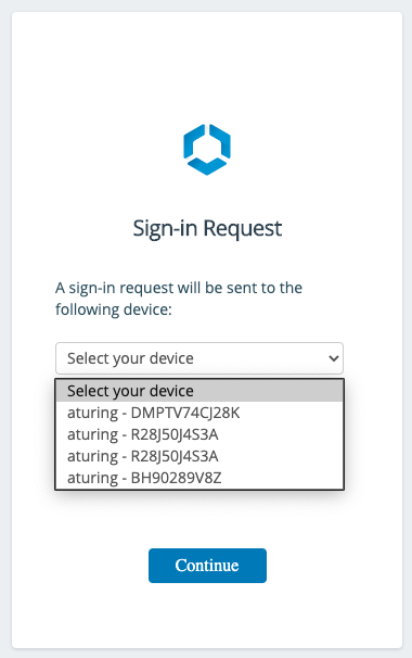 If you have multiple devices enrolled/registered in Workspace ONE, each of those devices is listed in the dropdown. Select your in-hand device.