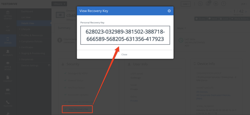 ...and view the recovery key.
