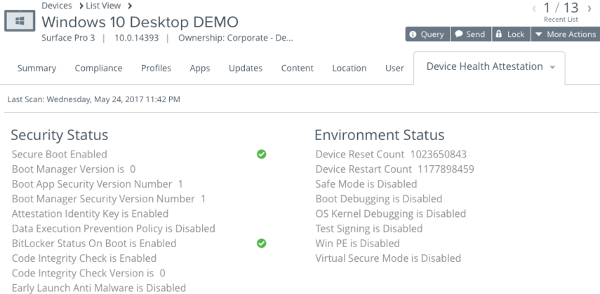 - It's a fact that some vulnerabilities compromise PCs prior to loading Windows, antivirus, and antimalware protections. Health attestation is able take measurements for things like Secure Boot, code integrity, BitLocker and boot manager and compare them against baselines stored in Workspace ONE UEM. If a device is compromised, it can be addressed via the compliance engine.