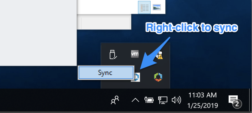 To sync products (e.g., the registry edit scripts), manually sync the AirWatch Protection Agent/Unified Agent via a right-click as shown below.