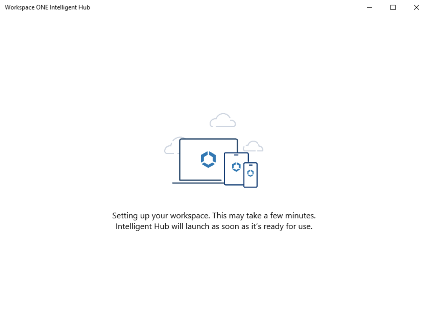 After enrollment, the Workspace ONE Intelligent Hub will automatically launch, preconfigured with the Workspace ONE Access tenant. It will complete setting up your workspace.