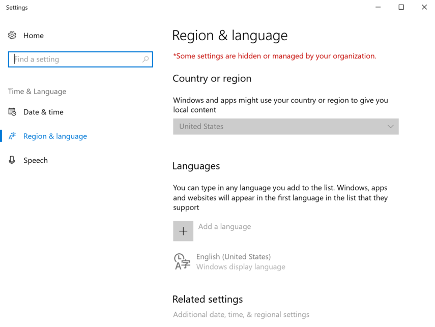 On the device, search for region settings. Workspace ONE UEM-managed policy should prevent changing them. Along with a red notification, settings will be grayed out.