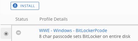 To demo BitLocker, from the console, push the WWE - Windows - BitLocker-Pcode profile.