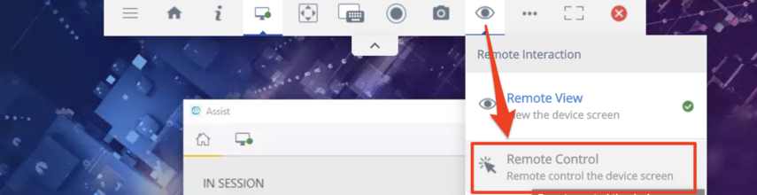 Next, to remote control the device, request access from the toolbar: