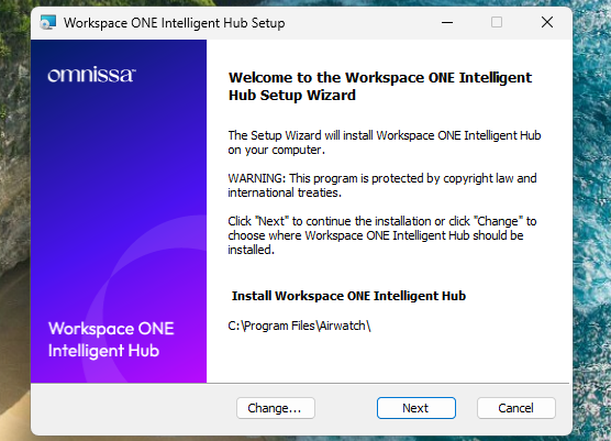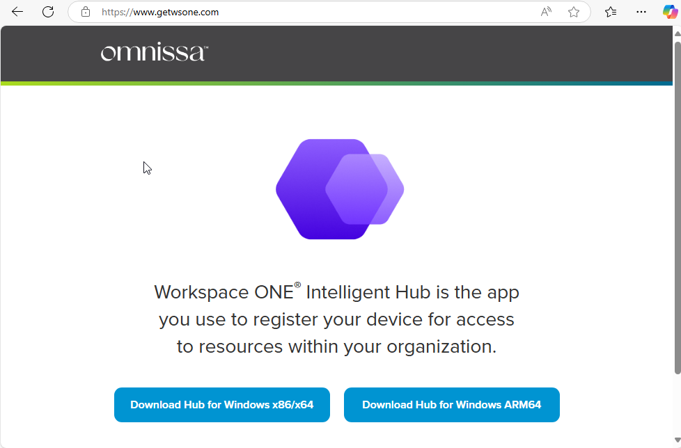 | Download and run the Workspace ONE Intelligent Hub app. After installation completes, the Hub should launch and you will then be guided through enrollment. |