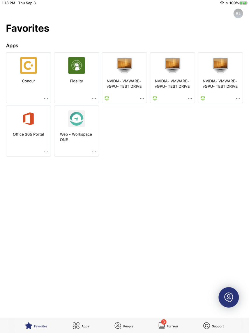 The For You section is where company notifications are presented in the Workspace ONE Intelligent Hub. From this "single pane of glass," users are able read about new app assignments, acknowledge custom administrative alerts, and most importantly, take action on enterprise systems' tasks sent via the Workspace ONE Mobile Flows platform.
