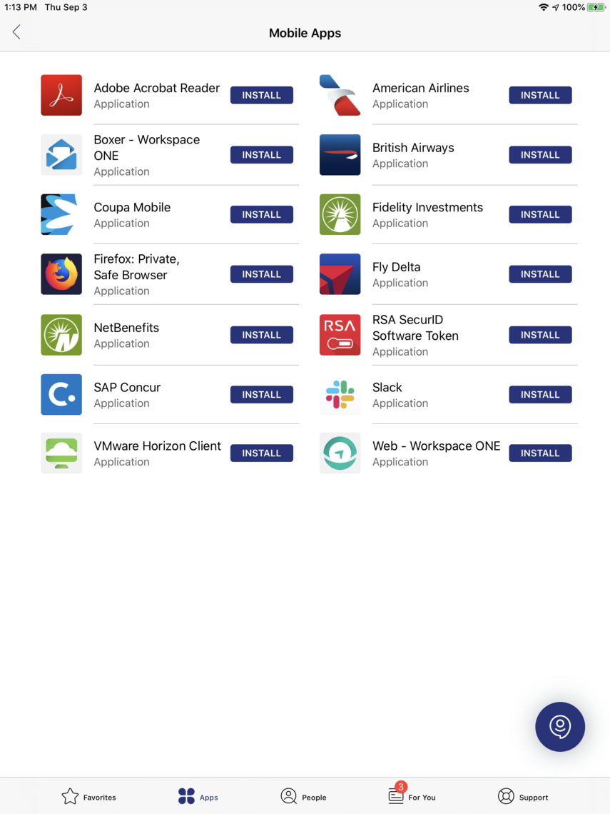 Select the Mobile Apps category to obtain a list of administrator-approved native apps available for installation.