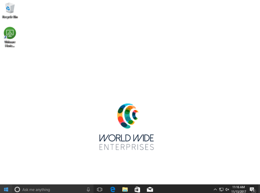 After the corporate device provisioning is underway, one of the first visible changes is the desktop wallpaper change. This change is made by Workspace ONE UEM product provisioning.