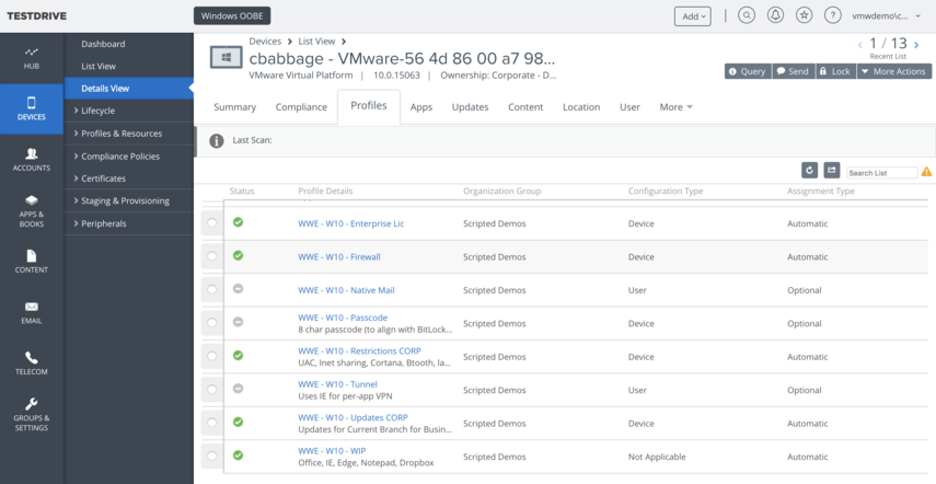 Login to the console (testdrive.awmdm.com) with the demo account (vmwdp.com\cbabbage).
