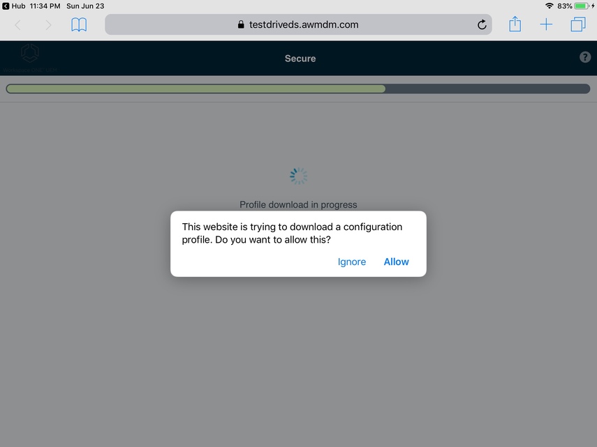 Next, you'll be directed to download the Workspace Services configuration profile. Click Allow in the browser to proceed.