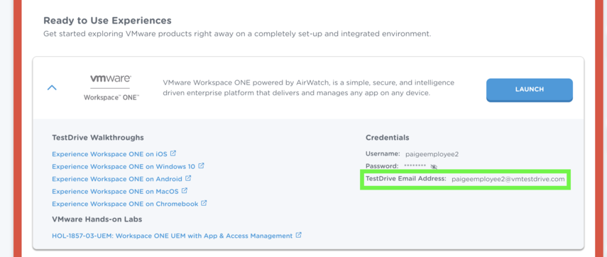 - Activated Workspace ONE UEM service from the DemoZone Digital Workspace in the TestDrive Portal.