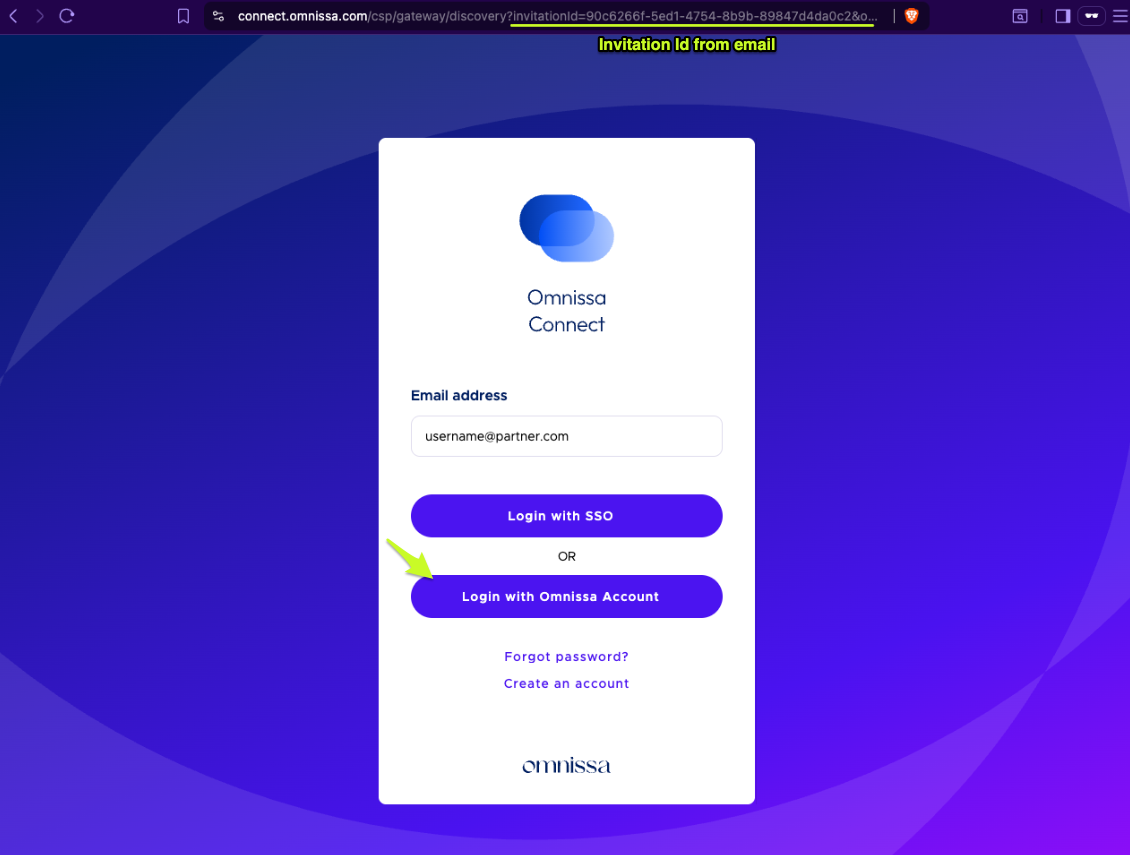 Launch the invitation URL and use your Omnissa Account to log in to Omnissa Connect.