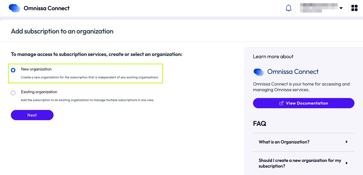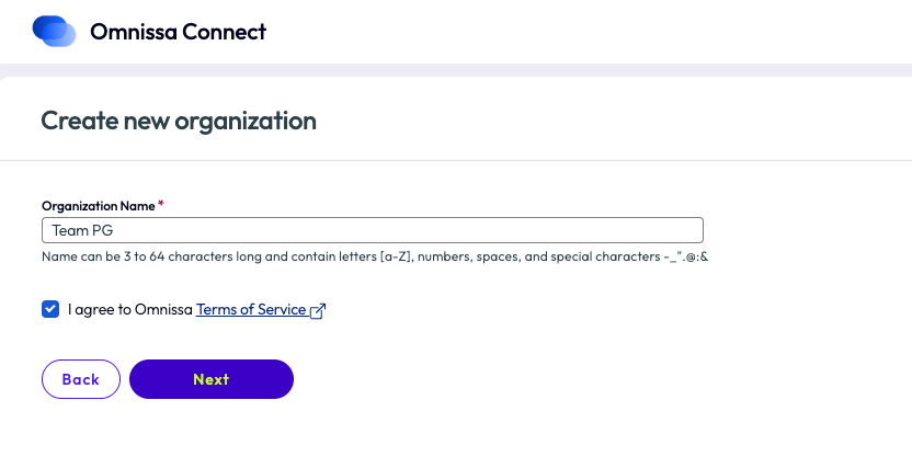 In the following steps, you are setting up a new Omnisssa Connect organization that contains the PG's services. Carefully, follow each step.