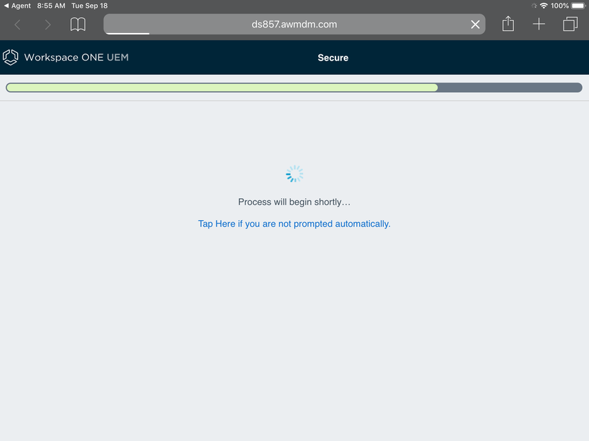 - Verify your enrollment URL. Please replace the 'cn' portion of your console URL with 'ds' (e.g. Enrollment URL for https://cn1206.awmdm.com is https://ds1206.awmdm.com; Exception: AW400.awmdm.com)