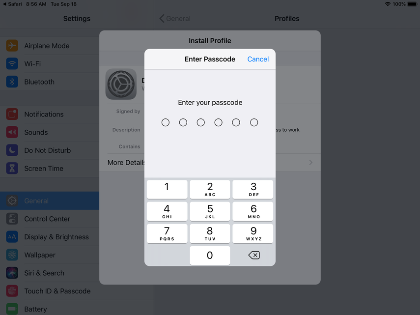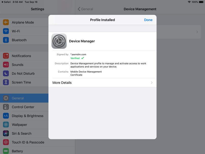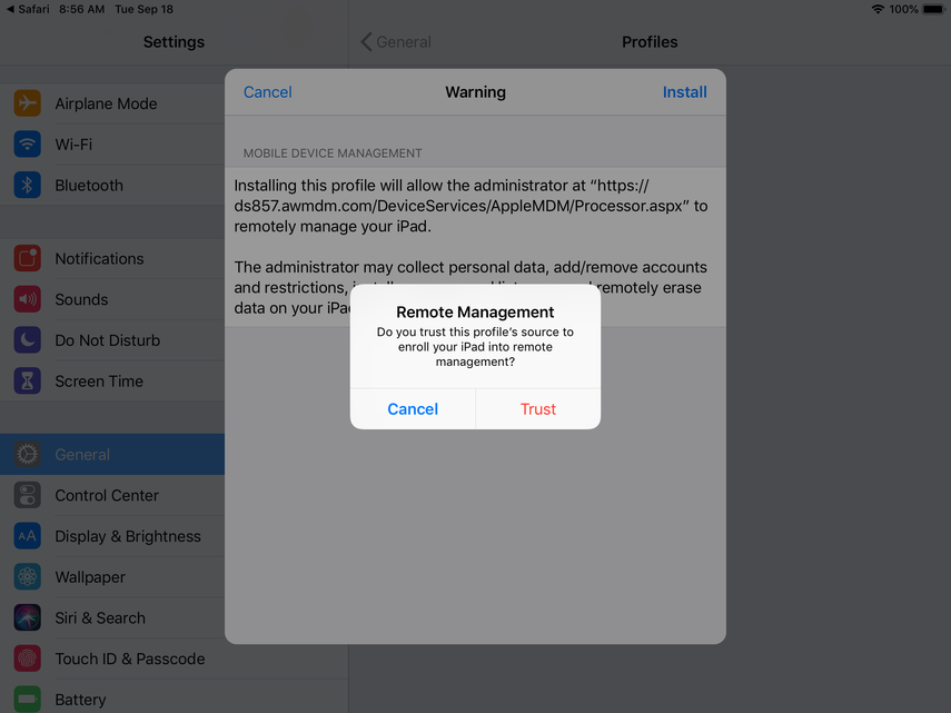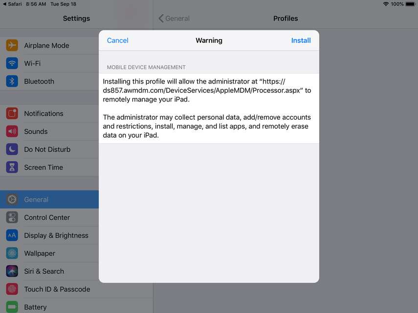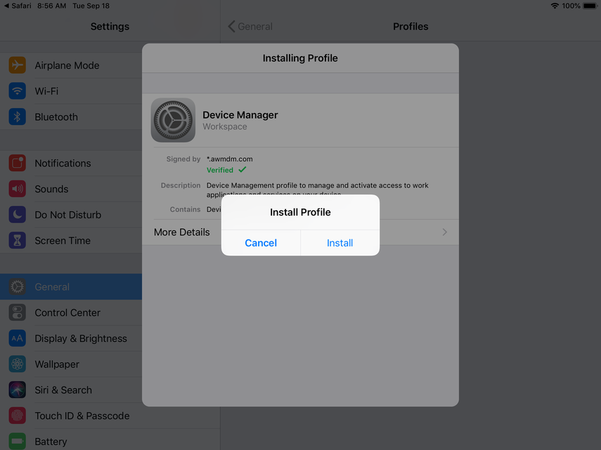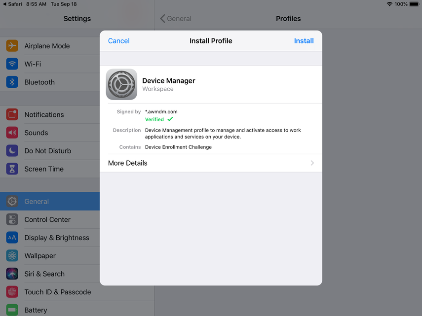 Now, you'll be prompted to install the Device Manager profile. Click Install and continue through the prompts.