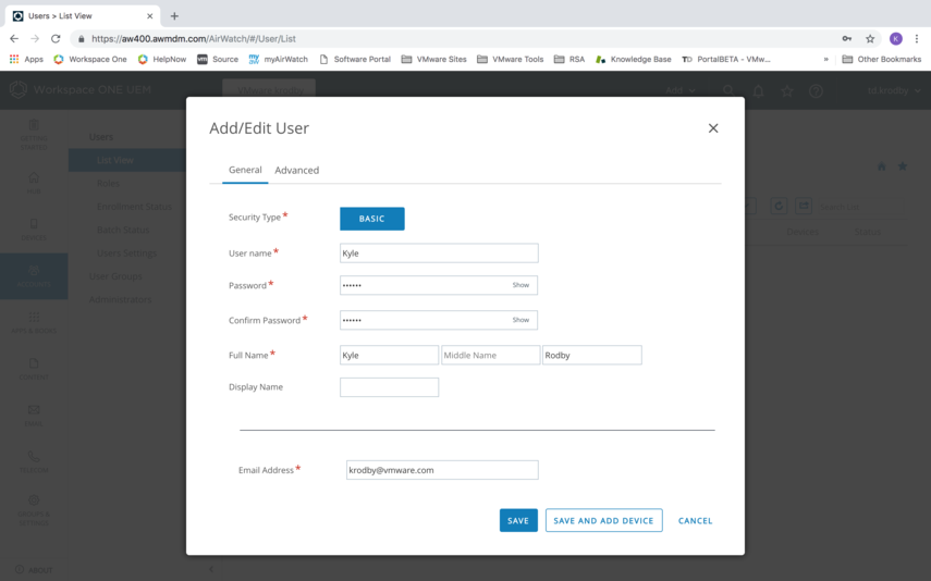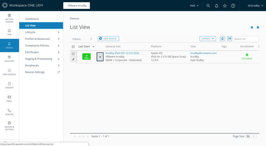 If you go back to the Workspace ONE UEM Sandbox Admin Console, you'll see the device now appears in the list view.