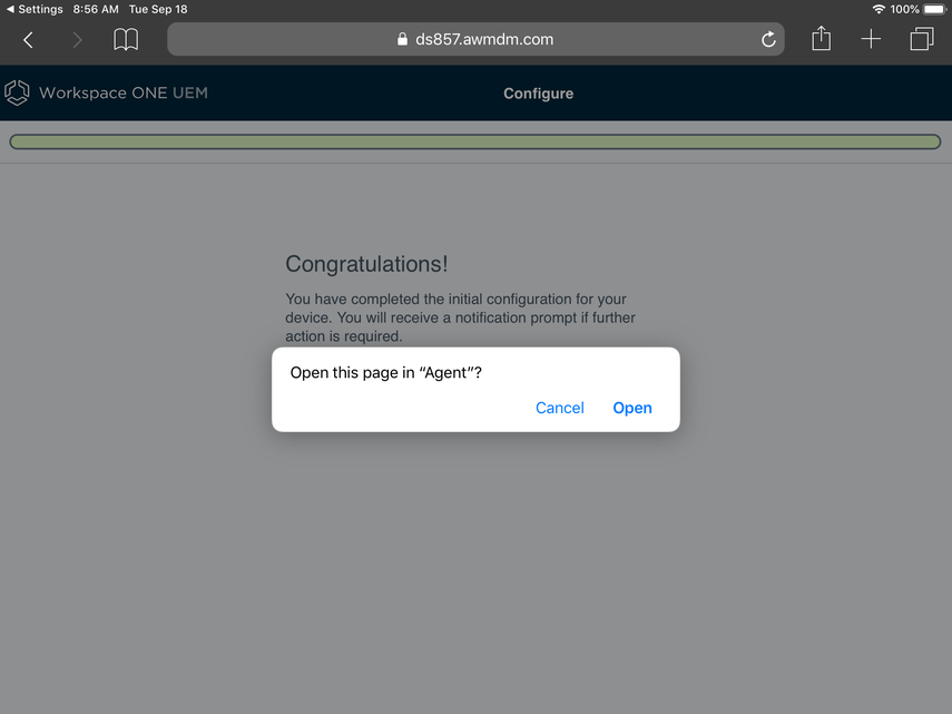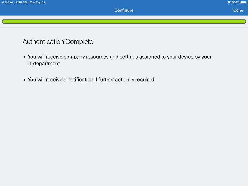 Next, you'll be redirected to the AirWatch Agent. Click Done to proceed.